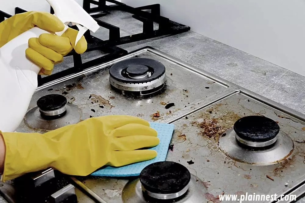 Wipe up any leftover food particles or oil as soon as you see them. If you want to keep your kitchen spotless all the time, preventing grease buildup is what you need to do. It would help if you cleaned the gas stove or oven before and after cooking.; it doesn’t take much time.